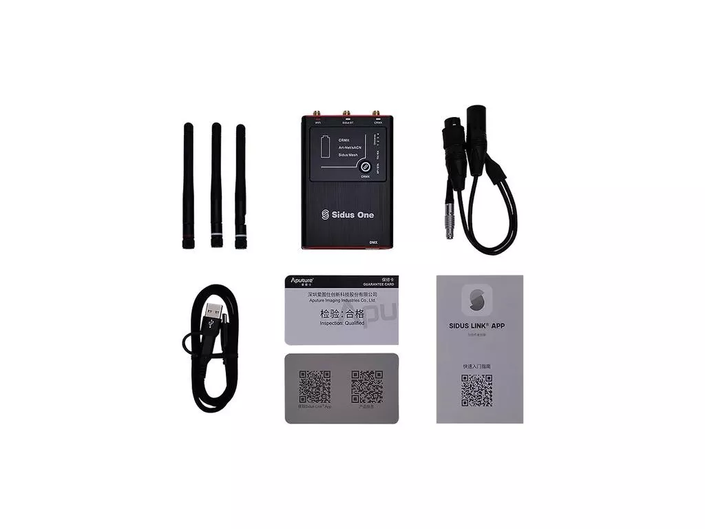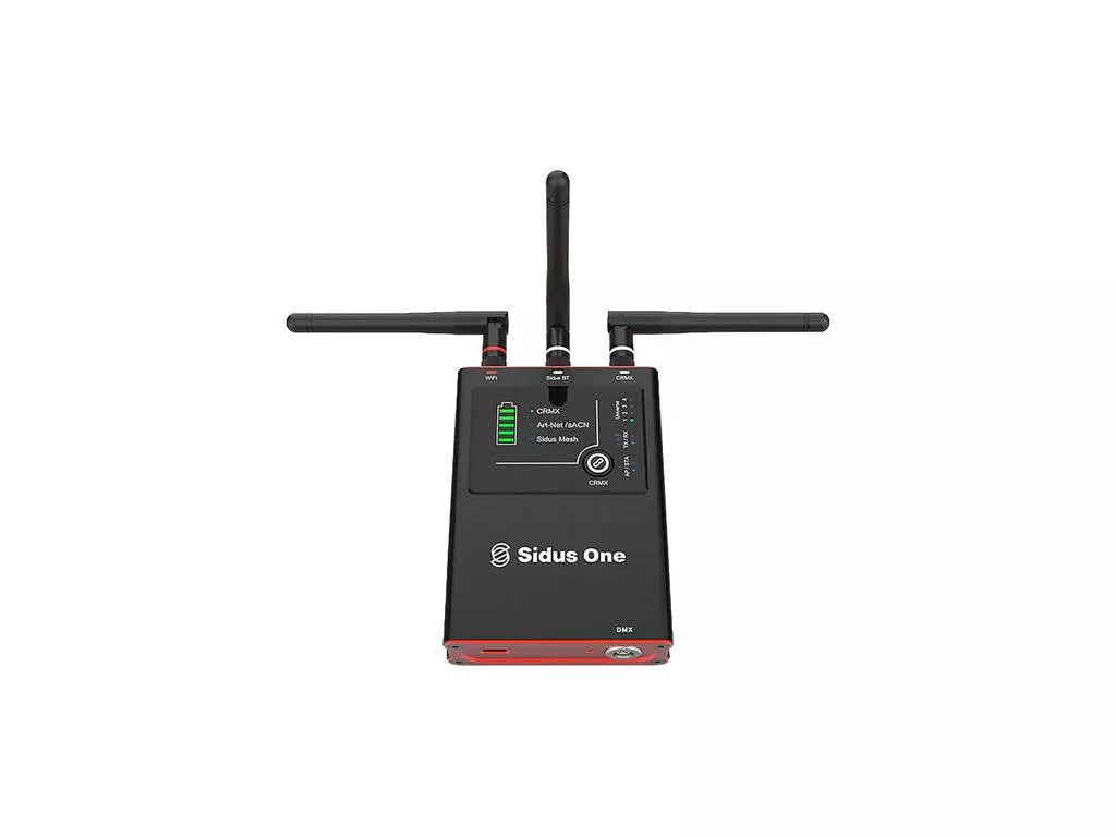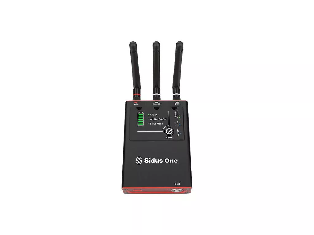 Sidus One ile TanışınSidus One'u tanıtıyoruz: Dahili Kablosuz Yönlendiriciye sahip yeni Kablosuz DMX verici/alıcı cihazımız. DMX, CRMX, sACN, Art-Net, Bluetooth Mesh – ihtiyacınız olan tüm bağlantılar, küçük ve şarj edilebilir bir kutuda bir arada. Herhangi bir aydınlatma uygulamasına bağlanabilir ve Sidus Link Pro için optimize edilmiştir. Ayrıca birden fazla Sidus One'ı bağlayarak dört evrene kadar kontrol sağlayabilirsiniz. Sidus Link Ekosisteminizi tamamlayın.
