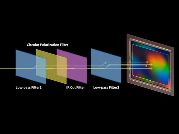 GFX ETERNA 55'in geniş format sensörü, film yapımcılığı için optimize edilmiş, özel olarak tasarlanmış bir optik alçak geçiş filtresi (OLPF) ile donatılmıştır. |