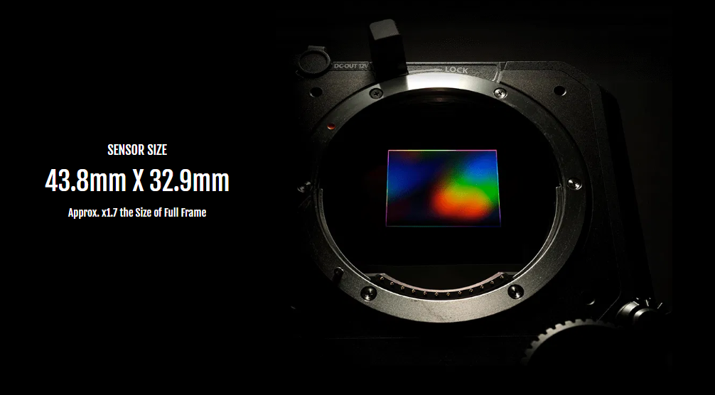 GFX ETERNA 55'in kalbinde güçlü bir geniş format sensör yer alır: 44x33 mm (55 mm diyagonal) ve bu sensör, geleneksel 35 mm tam kare sensörlerden