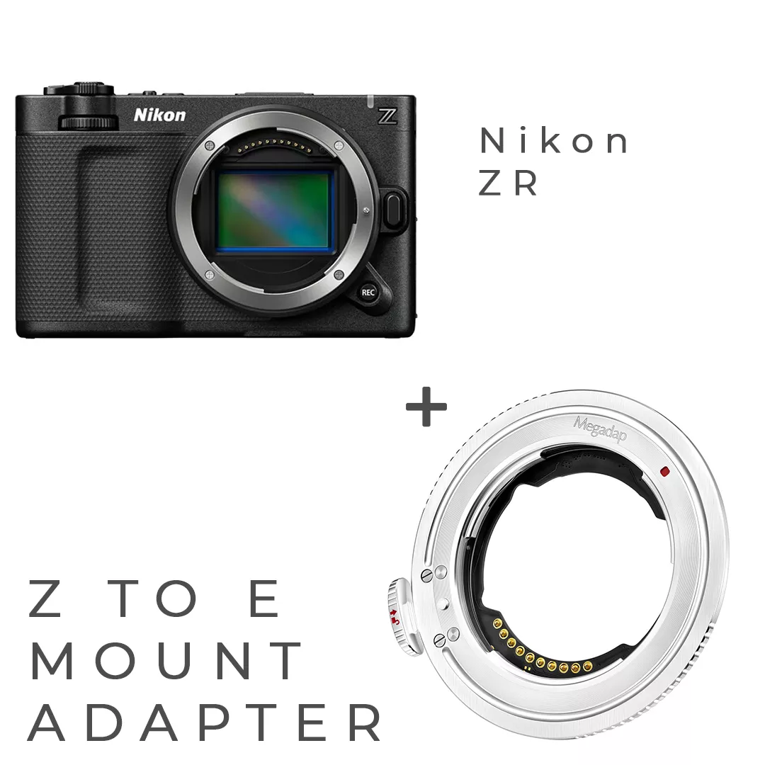 Nikon ZR + Megadap Nikon Z to Sony E Mount Autofocus Convertor Adapter BundlePiyasa Fiyatı 143,371.67 TL %3 İndirim Satış Fiyatı 147,541.32 TL -