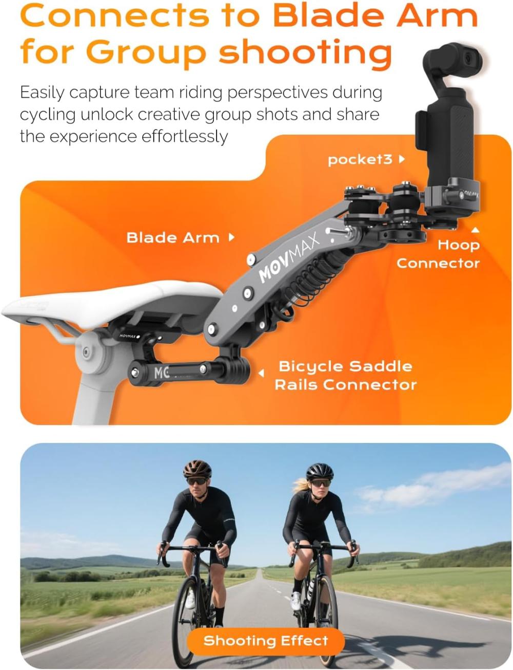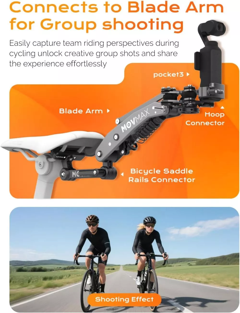 【Zahmetsiz Grup Çekimi】 MOVMAX Blade Arm ile birlikte kullanıldığında arka seleden çekim yapmayı mümkün kılar. Yol boyunca sürüş arkadaşlarınızın görüntülerini kolayca yakalayın ve bisiklet takımınızın fotoğrafçısı olun.