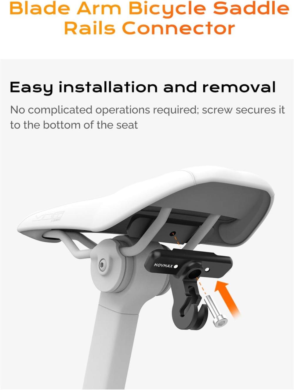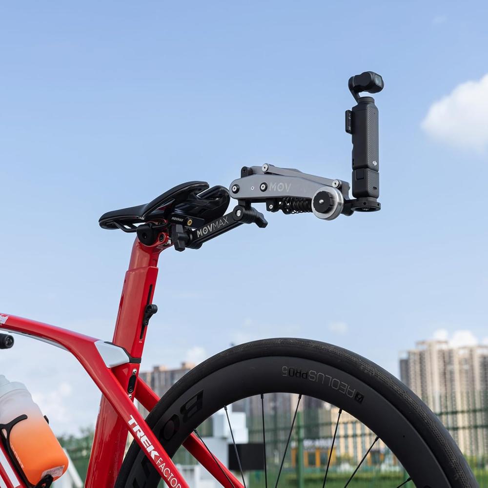 Bisiklet Sele Rayı Bağlantı Aparatı, MOVMAX Görünmez Karbon Fiber Selfie Çubuğu ile birlikte kullanıldığında drone ile çekilmiş gibi bir bakış açısı sunar. Görünmez çubuk ile birleştirildiğinde, arka sele çekim açısı 360 derece ayarlanabilir ve bu sayede çeşitli vlog içerikleri ve görüntüler elde edilebilir.