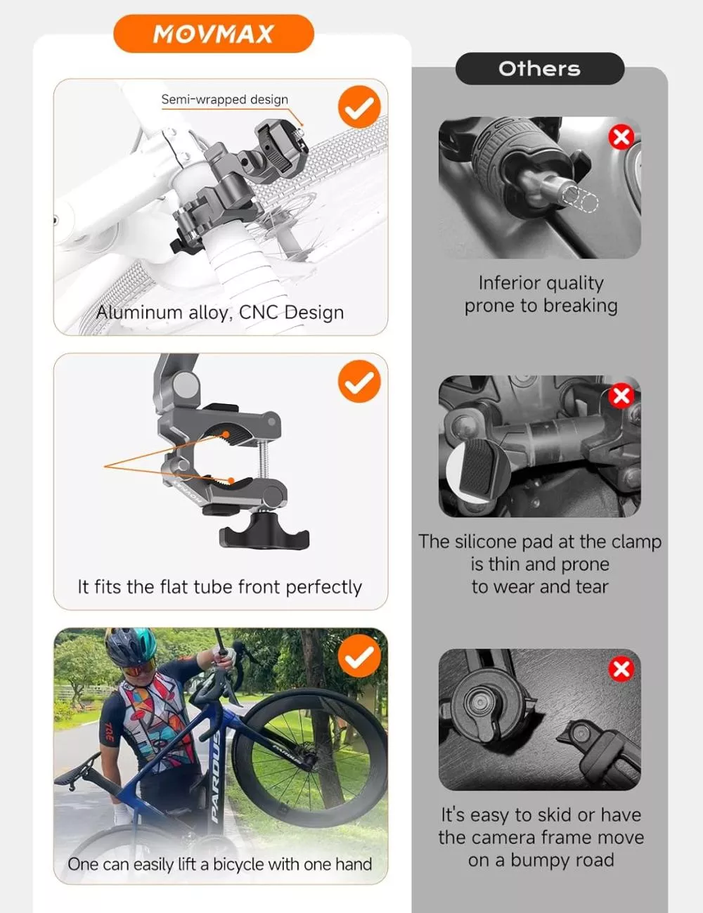 MOVMAX Kamera Kelepçe Montaj Aparatı ve Görünmez Selfie Çubuğu Bisiklet/Motosiklet Bağlantı Kiti