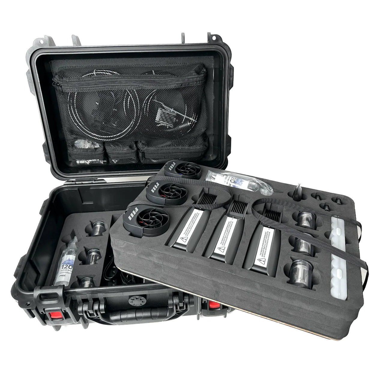Kutu içeriğinde tüm duman şekillendirme aksesuarları, özel efektler için tüp sistemi, şarj istasyonu ve tüm seti içine alan koruyucu taşıma çantası bulunur.
