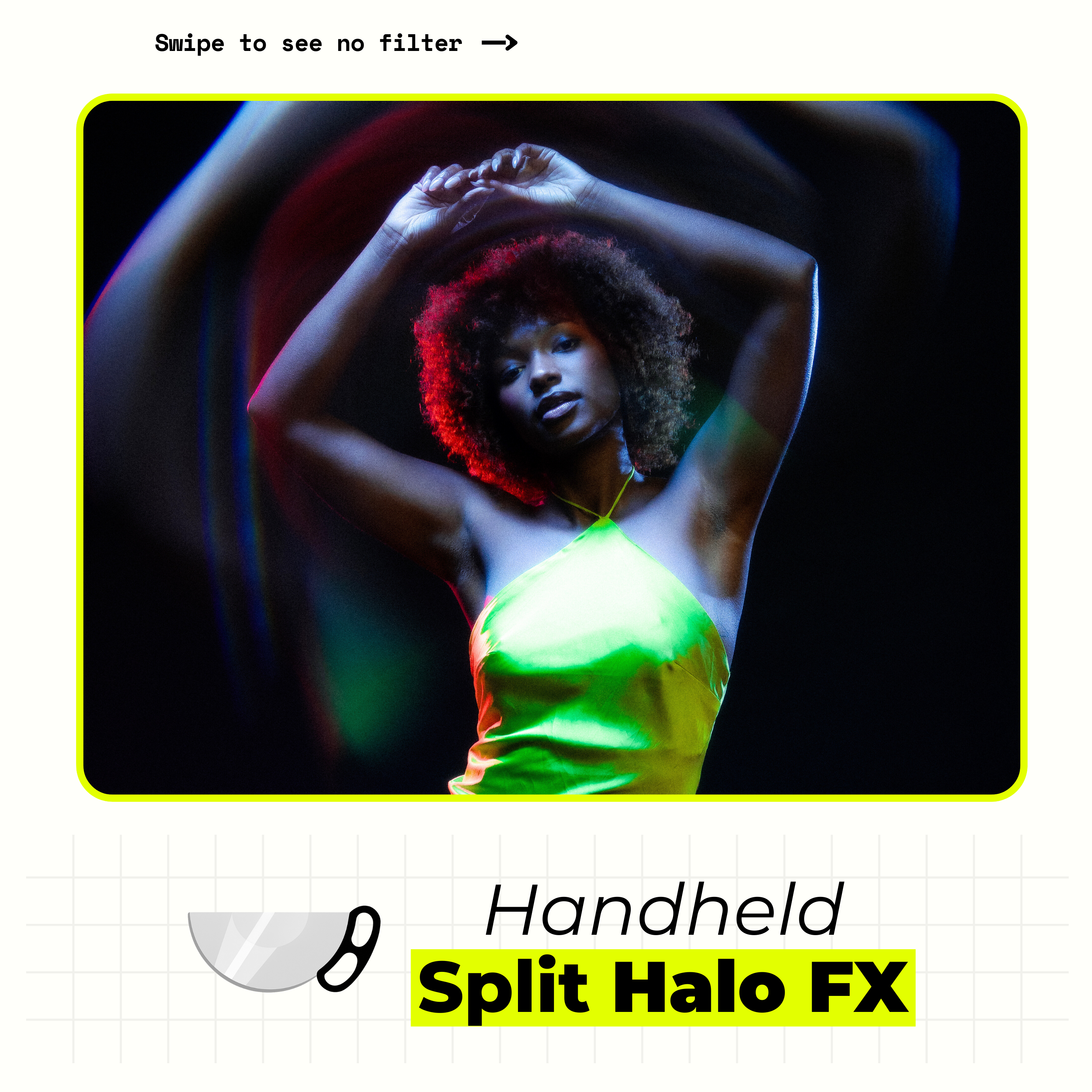 The Handheld Split Halo FX creates an in camera refracted motion blur effect that works great for abstracting parts of your frame & subject! This was designed based of our our existing Halo FX series circular filters, but now with a handheld design!
