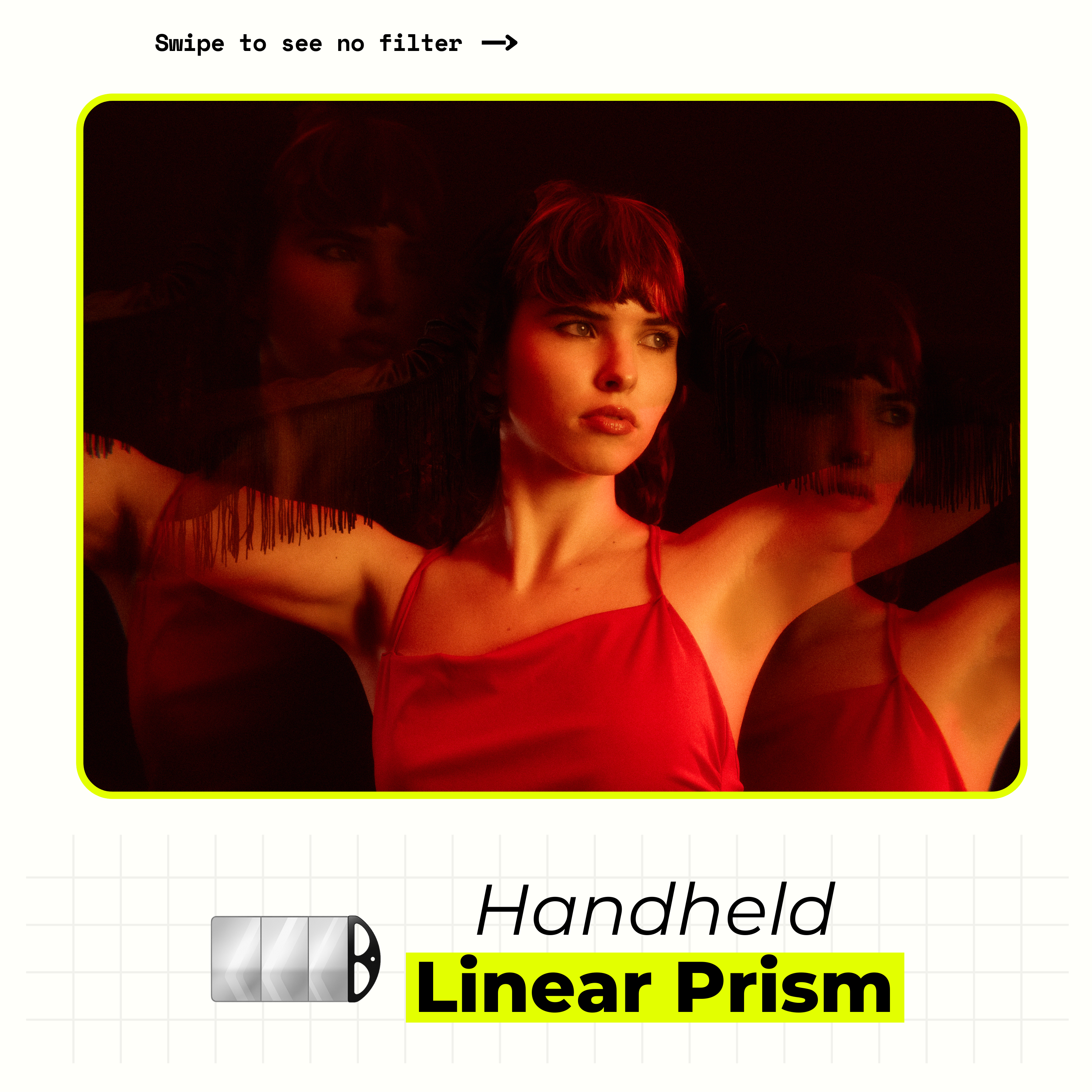 Elde Taşınabilir Doğrusal Prizma, konunuzun ince kopyalarını oluşturan 3 yönlü bir prizma ile tasarlanmıştır! Bu, insanları, portreleri veya ürün çekimlerini çekerken kameraya bir soyut çoğaltma eklemek istediğinizde... veya süjenizin öne çıkmasını istediğinizde harika çalışır!