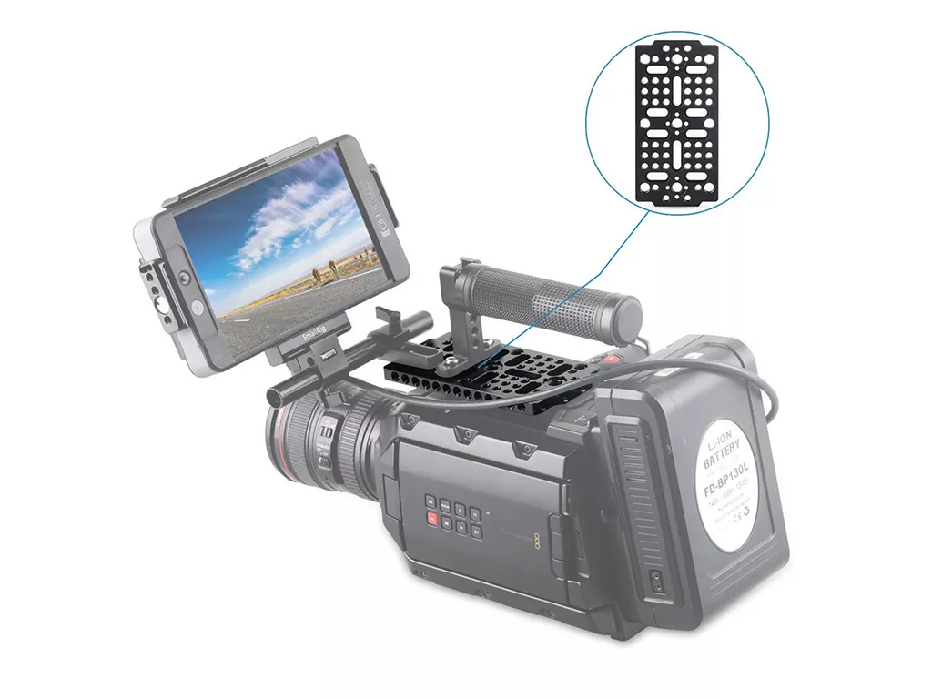 SmallRig Çok Cheeseplate 1681, Blackmagic URSA Mini Kameranın üstünde kullanılabilen üstten monteli bir Cheeseplatedir. Bu Cheeseplate, ray blokları, üst kulplar, kuyruklu bağlantılar vb. gibi çeşitli aksesuarları takabilmeniz için standart 9 mm aralıklı bir dizi montaj deliğiyle birlikte gelir. Dahili ARRI konumlandırma delikleri, ARRI uyumlu uzatma blokları için sağlanmıştır.