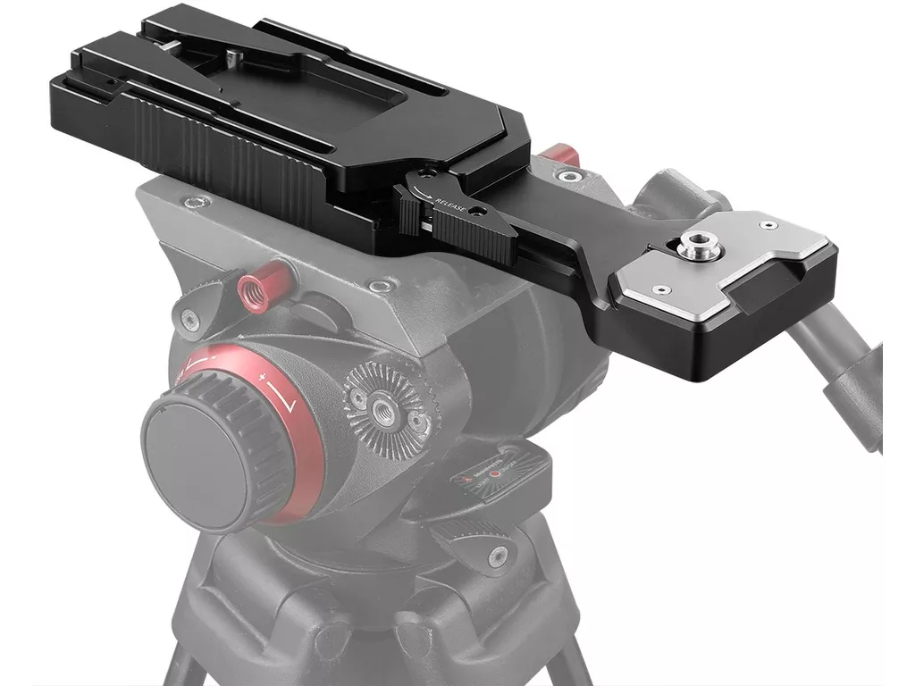 VCT tripod plakası, farklı hızlı salınımlı plakaları bir tripoda bağlamak için alt kısmında birden fazla 1/4"-20 ve 3/8"-16 diş içerir.