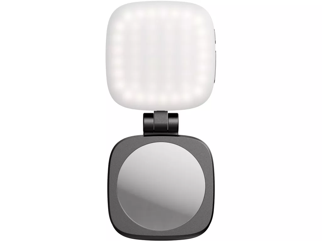 sorunsuz ve hızlı bir şekilde takılıp çıkarılabilir. Alternatif olarak, dahil edilen metal halka etiketi kullanılarak Android telefonlara hızla takılabilir. Dahili mini çift eksenli başlığa sahip olan bu ışık, 360° pan ve 270° eğim ayarlamaları sağlayarak tam 360° dolgu ışığı kapsamı sağlar. Kompakt ve hafif olan bu ışık, bir pudra kutusuna benzer ve zahmetsizce taşınabilir hale getirilir. Dahili cam ayna, üniteyi anında kullanışlı bir makyaj aynasına dönüştürür! Kullanıcılar, beş ayarlanabilir parlaklık seviyesi ve dört renk sıcaklığı seçeneği (sıcak sarı / sarı / beyaz / soğuk beyaz) ile aydınlatmalarını kolayca özelleştirebilir. Bu iki renkli sıcaklık yüksek kaliteli ışık kaynağı, yüksek bir renk oluşturma indeksi ve sadık renk üretimi garanti eder. Göz alıcı efektlerle birleştirilen geniş yumuşak ışık, eşit ışık sağlar ve ciltte ve gözlerde güzelleştirme etkisi yaratır. 850mAh polimer lityum pil ile donatılmış olup, USB-C şarjını destekler ve tam güçte 90 dakikaya kadar sürekli kullanım sağlar. Bu ürün, hobi fotoğrafçılarının, kişisel blog yazarlarının ve mobil canlı yayıncıların verimlilik, ışık efektleri, taşınabilirlik ve pil ömrü ihtiyaçlarını karşılayan tek duraklı bir çözümdür.