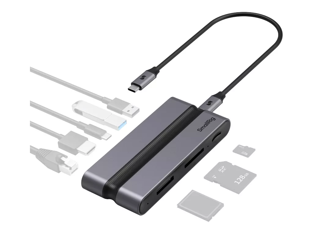 SmallRig CFexpress 9'u 1 Arada Fotoğraf Yerleştirme İstasyonu (B) 4662, birden fazla arayüzde sorunsuz bağlantıya ihtiyaç duyan fotoğrafçılar için tasarlanmıştır. Bu profesyonel 9'u 1 arada yerleştirme istasyonu, bir adet 10 Gbps CFexpress Tip B yuvası, bir adet UHS-II SD 4.0 ve microSD 4.0 yuvası, bir adet 10 Gbps USB-C veri portu, iki adet 5 Gbps USB-A veri portu, bir adet 4K@30 Hz HDMI portu, bir adet Gigabit Ethernet portu ve bir adet 100 W PD-IN portu içerir. Kolay dosya erişimi ve çoklu port işlevselliği sağlayarak hem işi hem de eğlenceyi kolaylaştırır. Gelişmiş iş verimliliği için 10 Gbps veri aktarımını destekleyen 50 cm / 19,7 inç çift başlı USB-C yüksek hızlı kablo içerir. Bağımsız yerleştirme istasyonu, farklı uzunluklardaki kabloları barındırarak düzenli bir çalışma alanı sağlar. Ek olarak, biyonik yüzgeç benzeri yapı güvenli kullanım için etkili ısı dağılımı sağlar. Kompakt ve taşınabilir olan bu yerleştirme istasyonu, verimli bir dijital yaşam tarzı için idealdir.