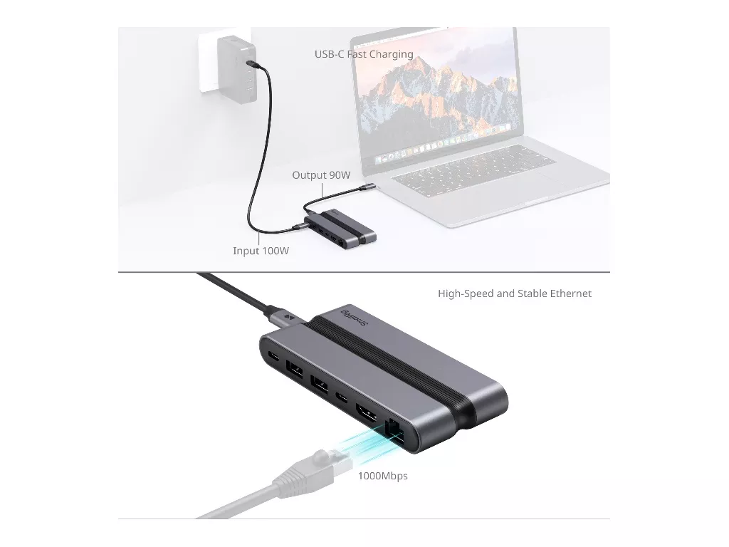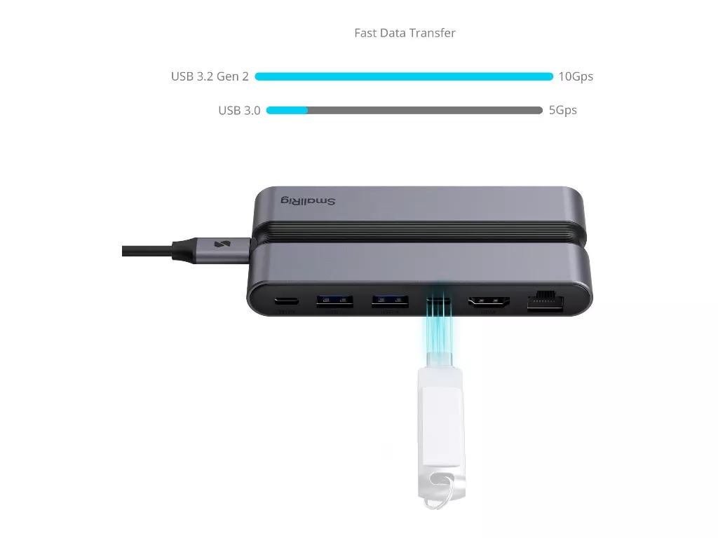 profesyonel 9'u 1 arada yerleştirme istasyonu, bir adet 10 Gbps CFexpress Tip A yuvası, bir adet UHS-II SD 4.0 ve microSD 4.0 yuvası, bir adet 10 Gbps USB-C veri portu, iki adet 5 Gbps USB-A veri portu, bir adet 4K@30 Hz HDMI portu, bir adet Gigabit Ethernet portu ve bir adet 100 W PD-IN portu içerir. Kolay dosya erişimi ve çoklu port işlevselliği sağlayarak hem işi hem de eğlenceyi kolaylaştırır. Gelişmiş iş verimliliği için 10 Gbps veri aktarımını destekleyen 50 cm çift başlı USB-C yüksek hızlı kablo içerir. Bağımsız yerleştirme istasyonu, farklı uzunluklardaki kabloları barındırarak düzenli bir çalışma alanı sağlar. Ek olarak, biyonik yüzgeç benzeri yapı güvenli kullanım için etkili ısı dağılımı sağlar. Kompakt ve taşınabilir olan bu yerleştirme istasyonu, verimli bir dijital yaşam tarzı için idealdir.
