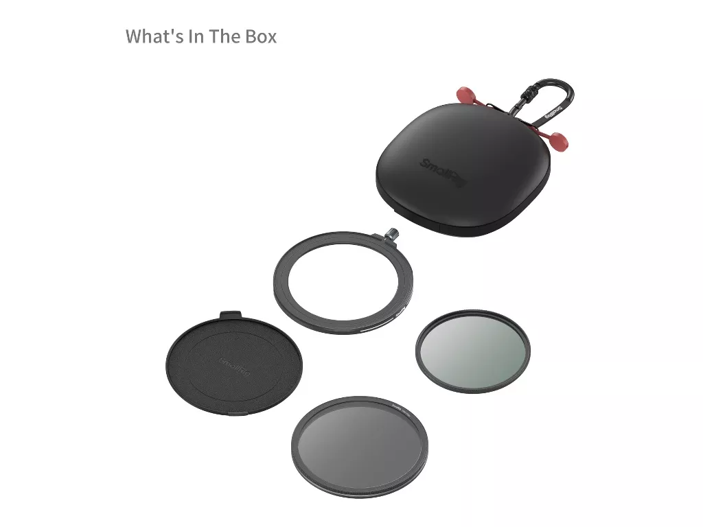 yüksek çözünürlüklü 8K VND filtresi ve toz kapağı içerir. UV filtresi, hem su geçirmez hem de parlama önleyici özellikleri geliştiren çift taraflı 22 katmanlı kaplama teknolojisini kullanır, toz ve sudan hızlı temizlik sağlarken parlamayı etkili bir şekilde önler. VND filtresi çok yönlü 2-9 durak ayar aralığı sunar. Ayrıca ithal B270 cam kullanan çift taraflı 22 katmanlı kaplamaya sahiptir ve ultra ince polarize film ve optik bağlama katmanı içerir, 1-6 durak ultra düşük renk sapması sağlar. Dahası, bu VND filtresi, X desenini ortadan kaldırmak için gelişmiş ışık sınırlama teknolojisini kullanarak geleneksel tek parça ND filtrelerine alternatif olarak kullanılabilir. VND filtresi, 8K çözünürlüğe sahiptir ve 8K RAW formatlı kayıt olanağı sağlar. Filtre kiti, UV filtrelerine sorunsuz ve güvenli bir şekilde takılmasını sağlayan ve aynı zamanda çeşitli filtreler için manyetik bağlantı sağlayan manyetik hızlı sökme mekanizmasına sahiptir. Ek olarak, toz geçirmez kapak filtreye manyetik olarak takılarak toza ve çizilmelere karşı koruma sağlar. Bu filtre kiti ayrıca filtrelerin rahatça saklanması için kompakt ve şık bir filtre kesesi içerir.