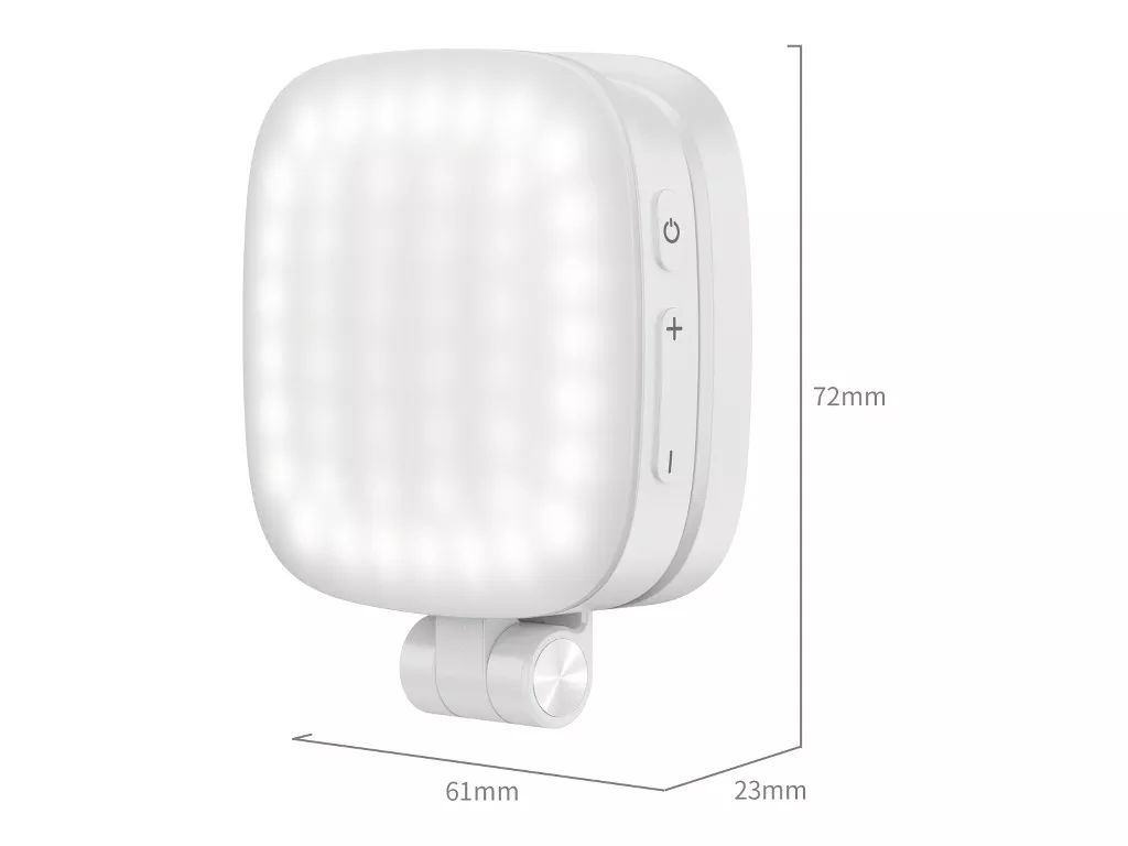 sorunsuz ve hızlı bir şekilde takılıp çıkarılabilir. Alternatif olarak, dahil edilen metal halka etiketi kullanılarak Android telefonlara hızla takılabilir. Dahili mini çift eksenli bir başlığa sahip olan bu ışık, 360° pan ve 270° eğim ayarlamaları sağlayarak tam 360° dolgu ışığı kapsamı sağlar. Kompakt ve hafif olan bu ışık, bir pudra kutusuna benzer ve zahmetsizce taşınabilir hale getirir. Dahili cam ayna, üniteyi anında kullanışlı bir makyaj aynasına dönüştürür! Kullanıcılar, beş ayarlanabilir parlaklık seviyesi ve dört renk sıcaklığı seçeneği (sıcak sarı / sarı / beyaz / soğuk beyaz) ile aydınlatmalarını kolayca özelleştirebilir. Bu iki renkli sıcaklık yüksek kaliteli ışık kaynağı, yüksek bir renk oluşturma indeksi ve sadık renk üretimi garanti eder. Göz alıcı efektlerle birleştirilmiş geniş yumuşak ışık, eşit ışık sağlar ve ciltte ve gözlerde güzelleştirme etkisi yaratır.