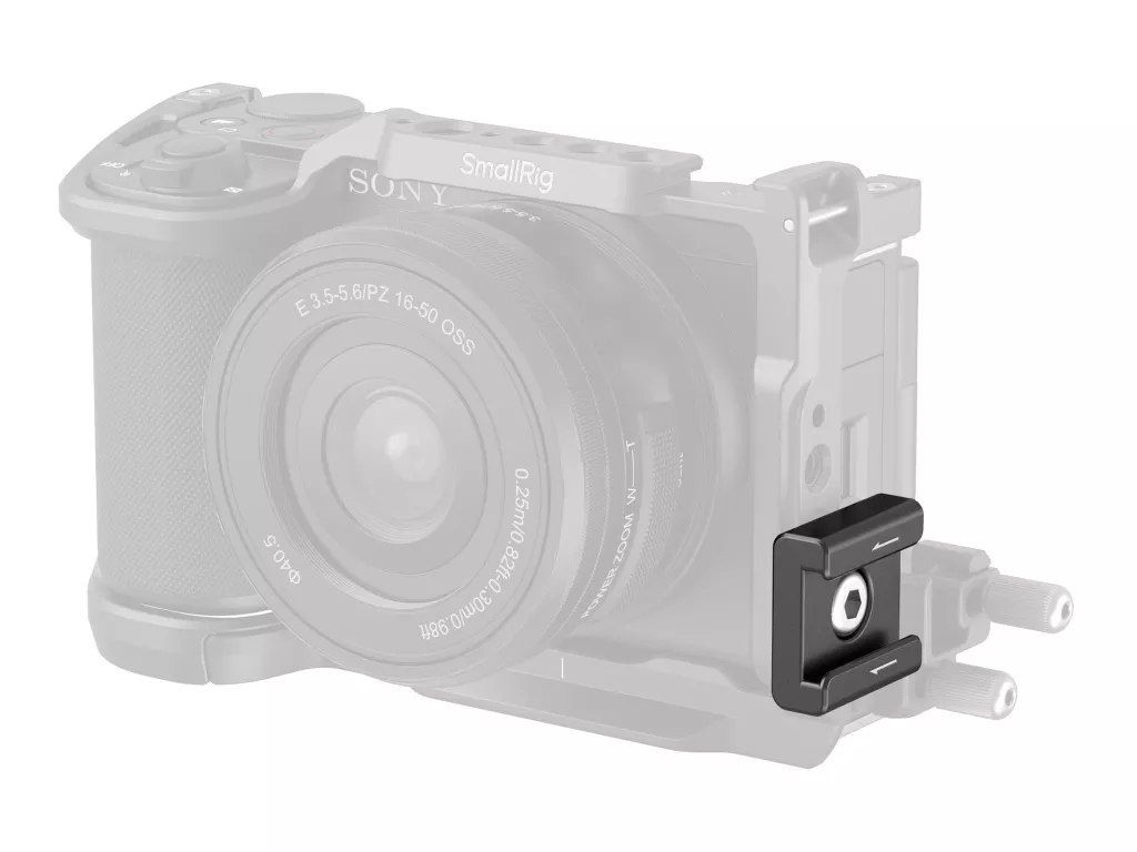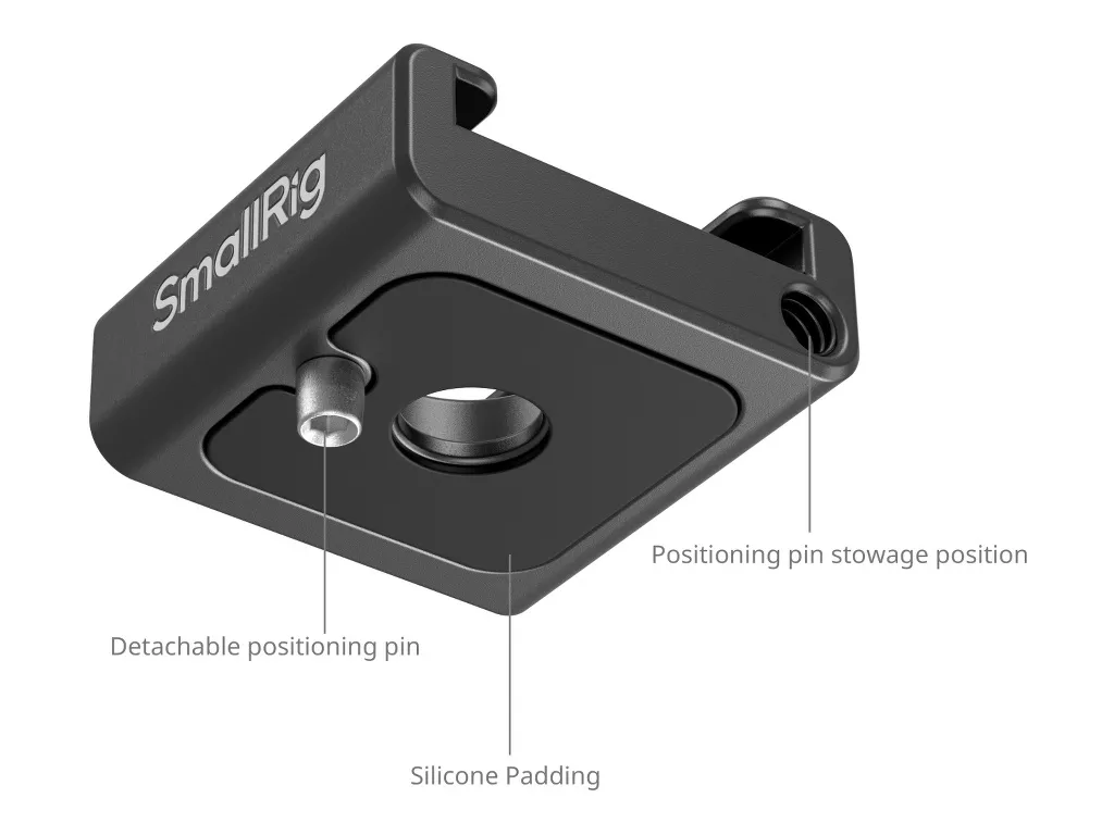 SmallRig kafesiyle uyumlu hale getirir. Kullanılmadığında, konumlandırma pimi kaybolmasını önlemek için flaş kızağının yan tarafında saklanabilir. Flaş kızağındaki bir ok,