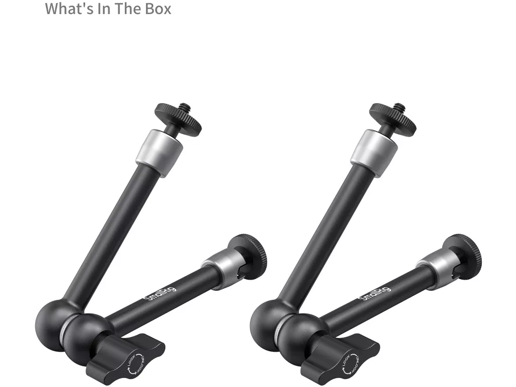 SmallRig Magic Arm Support Kit (9.8") 5317, her iki ucunda 1/4"-20 vidalarla donatılmıştır. Bir ucu monitörlere bağlanırken, diğer ucu kafesler, NATO rayları (ID 1973 / 1885),