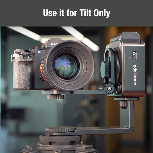 How it Works: The Tilt Kit attaches two HeadONE units together and enables both pan and tilt motions. The kit consists of two brackets: one connects the HeadONE units together, and the other provides tilt functionality while also serving as the panning platform.